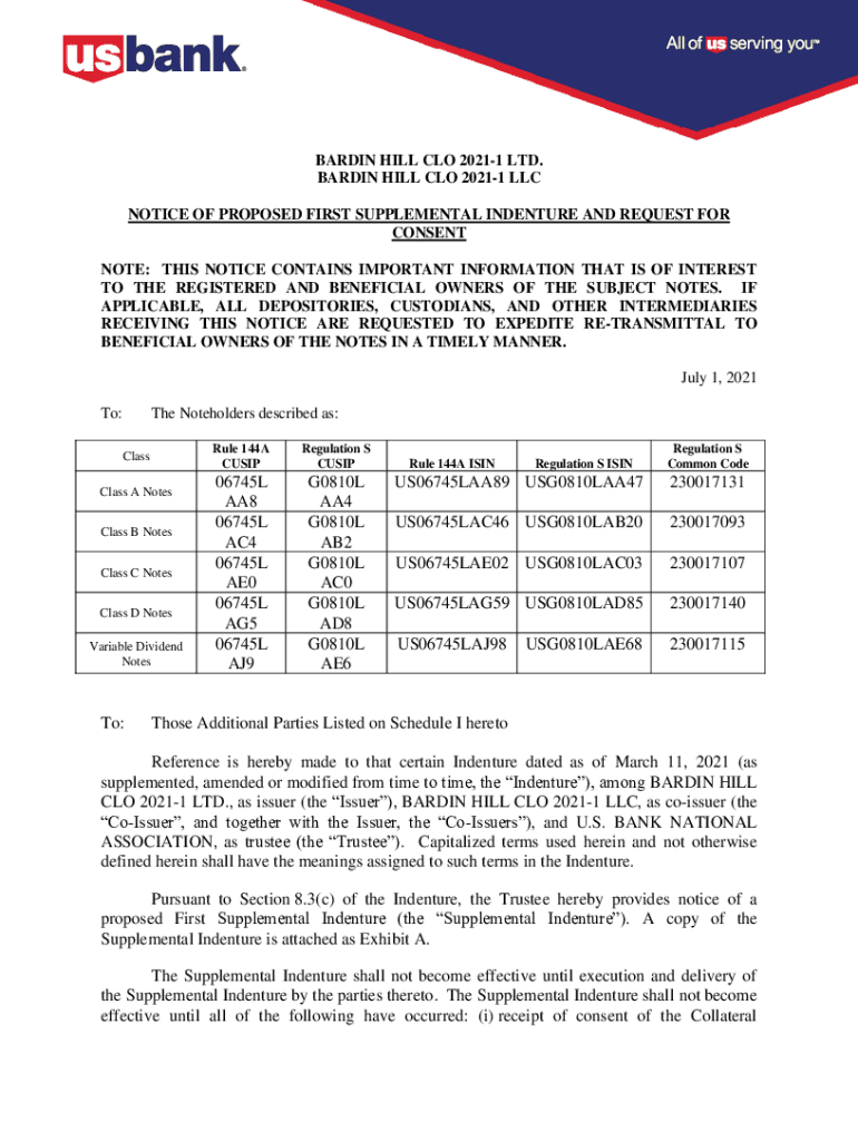 Get the free NOTICE OF PROPOSED FIRST SUPPLEMENTAL INDENTURE AND REQUEST FOR