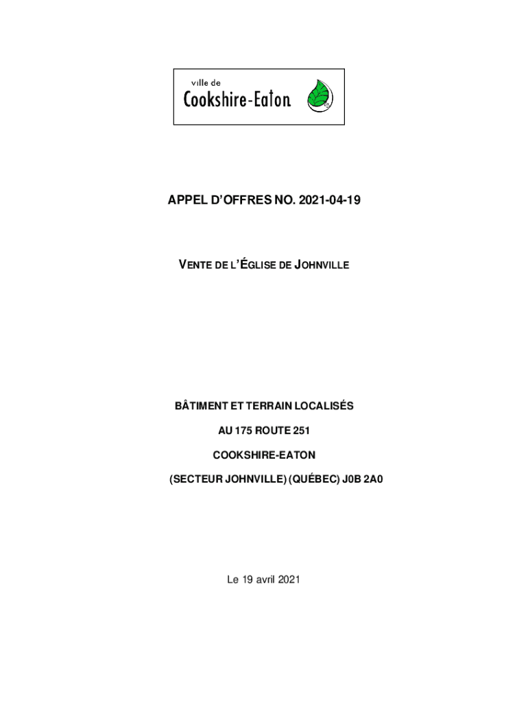 APPEAL DOFF RES NO. 20210419VENTE DE LOUISE DE JOHNVILLEBTIMENT ET TERRAIN LOCAL ISS AU 175 ROUTE 251 COOKSHIREEATON (SECT EUR JOINVILLE) (QUEBEC) J0B 2A0Le 19 April 20211.0RENSEIGNEMENTS GNRAUXPropritaire
