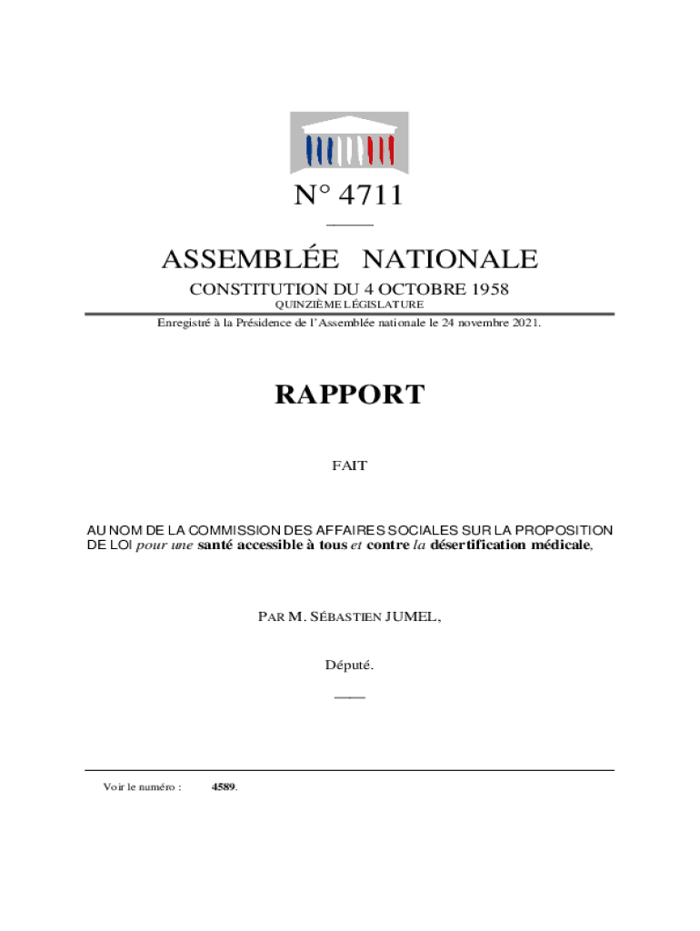 N 4711 ___ASSEMBLE NATIONAL CONSTITUTION DU 4 OCTOBER 1958 QUININE LGISLATUREEnregistr la Residence DE assemble national LE 24 November 2021.RAPPORT FAITH NO MDE LA COMMISSION DES AFFAIRS SOCIALS