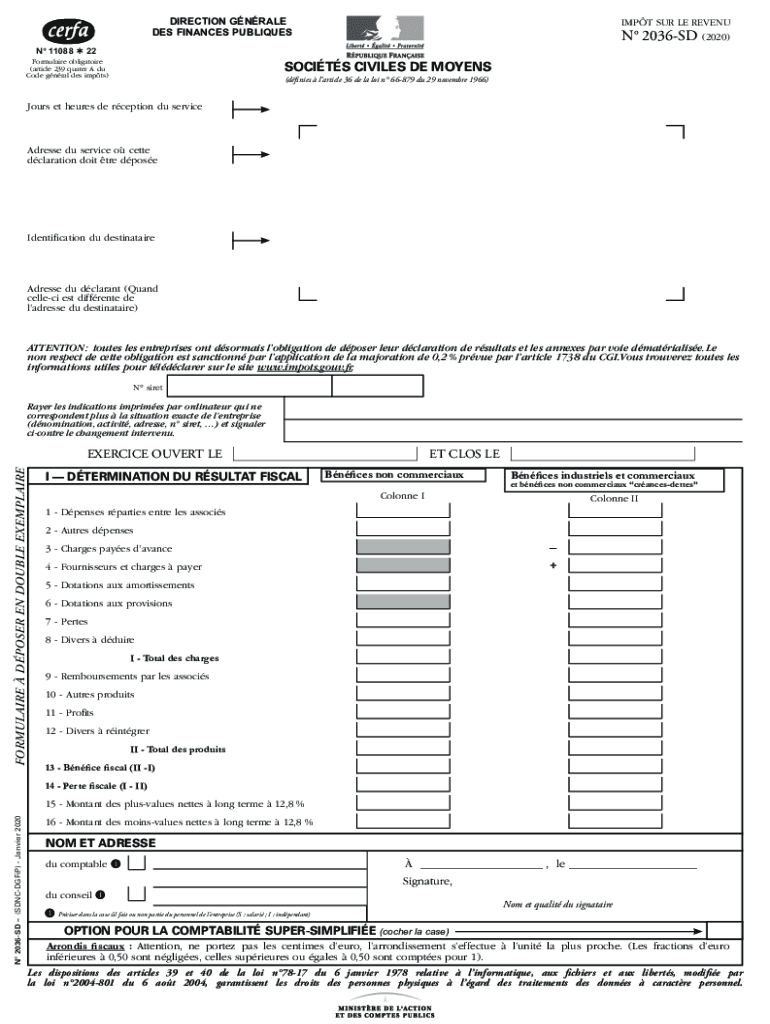 IMT SUR LE REVENUDIRECTION GRALE DES FINANCES PUBLISHES 2036SD (2020)N 11088 22 Formula ire obligatory (article 239 quarter A Du Code gnarl DES imps)SOC ITS CIVIL ES DE DOYENS (defines article 36