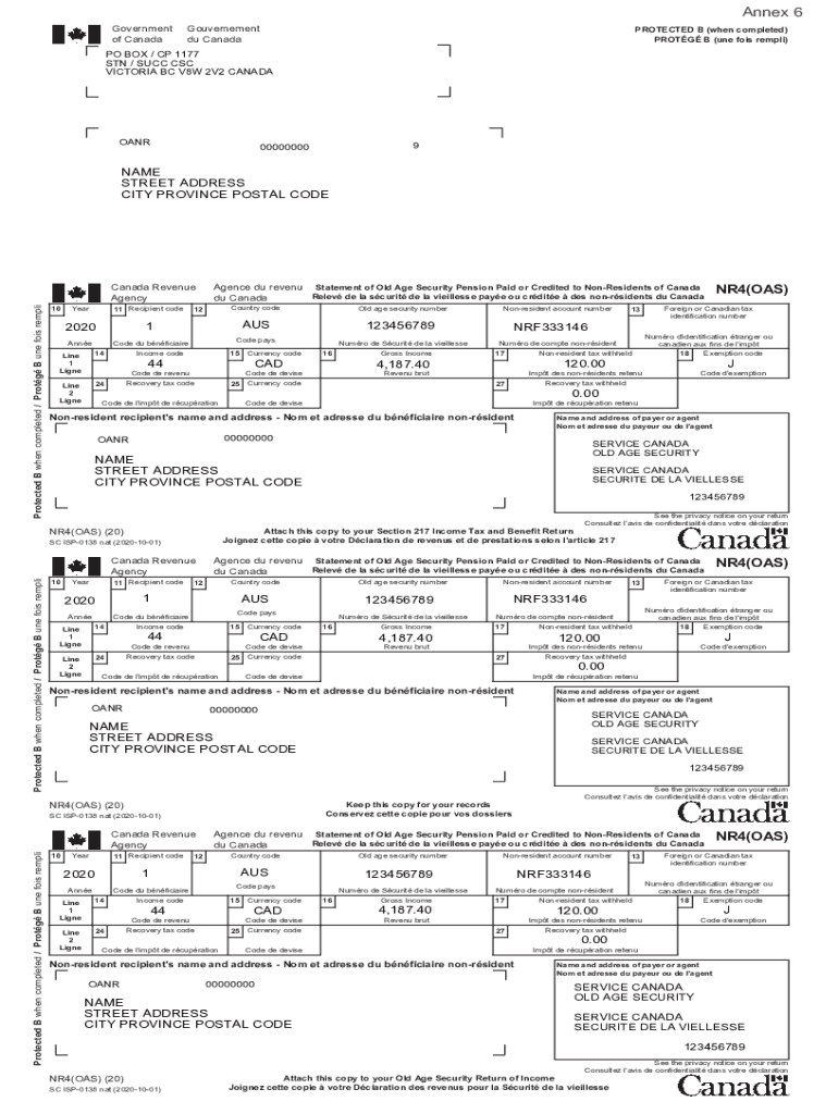 Annex 6 Government of CanadaGouvernement du CanadaPROTECTED B (when completed) PRONG B (one foil temple)PO BOX / CP 1177 STN / SUCH CSC VICTORIA BC V8W 2V2 CANADAOANR900000000NAME STREET ADDRESS CITY