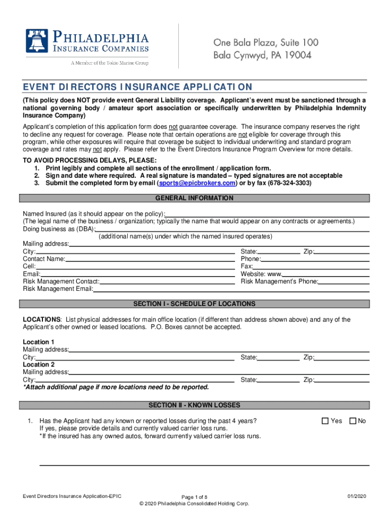 Print ApplicationClear ApplicationEVENT DIRECTORS INSURANCE APPLICATION (This policy does NOT provide event General Liability coverage. Applicants event must be sanctioned through a national governing