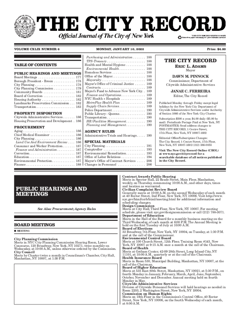 Get the free 177 VOLUME CXLIX NUMBER 6 MONDAY, JANUARY 10 ... - nyc.gov