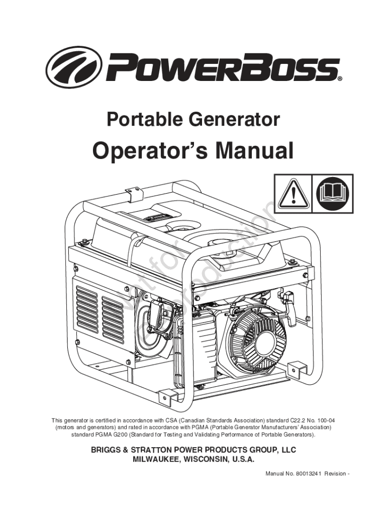 Portable Generator o R TF EP o r RO duct cooperators Manuals generator is certified in accordance with CSA (Canadian Standards Association) standard C22.2 No. 10004 (motors and generators) and rated