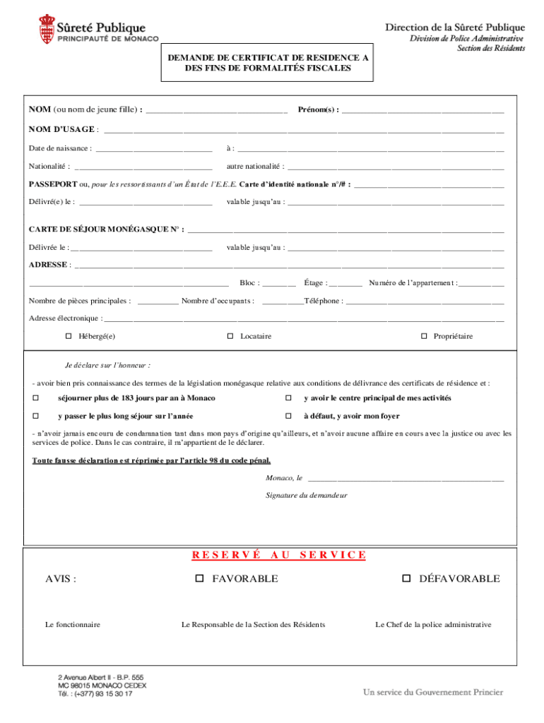 DEMAND DE CERTIFICATE DE RESIDENCE A DES FINS DE FORMALITY FISCALESNOM (of not de June file) : ___Prom(s) : ___NOT USAGE : ___ Date de Renaissance : ___ : ___Nationalist : ___outré nationalist :