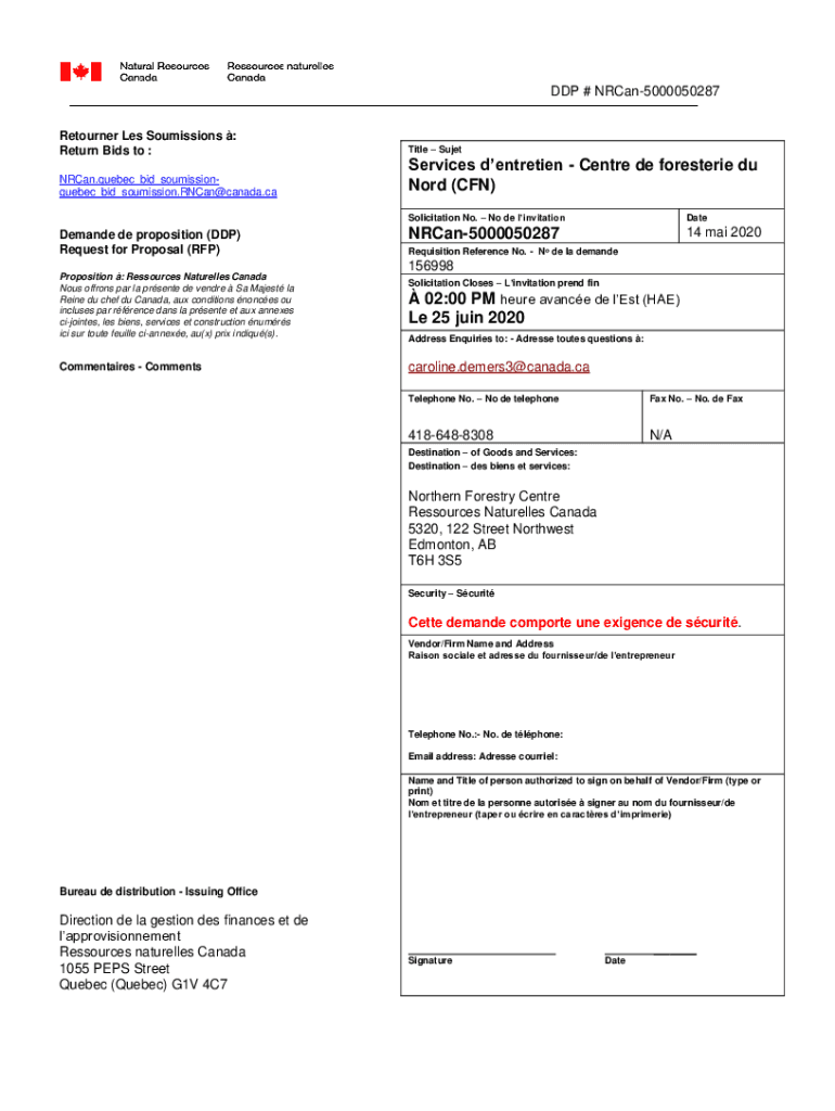 GDP # NRCan5000050287 Returner Les Sou missions : Return Bids to : NRCan.quebec_bid_soumissionquebec_bid_soumission.RNCan@canada.caDemande de proposition (GDP) Request for Proposal (RFP) Proposition