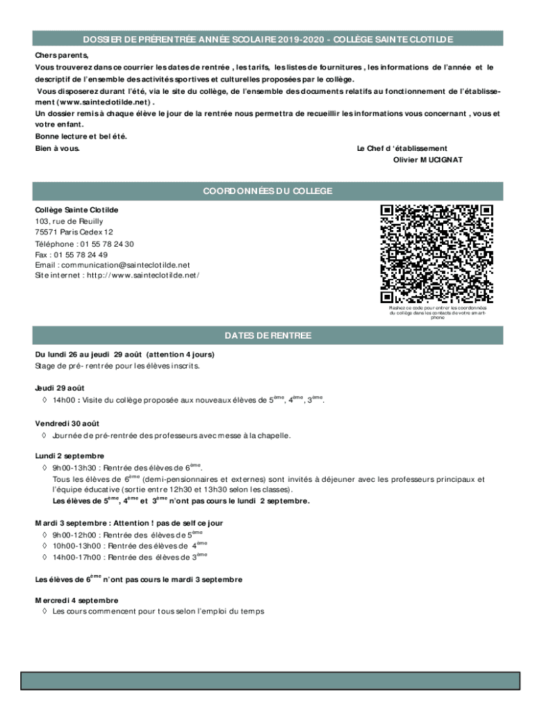 DOSSIER DE PARENTS ANNE CLAIRE 20192020 COLLEGE SAINT CHLORIDE Chess parents, Vows trouvère days CE courier LES dates DE renter, LES tariff, LES lists DE furniture, less information DE lane et LE