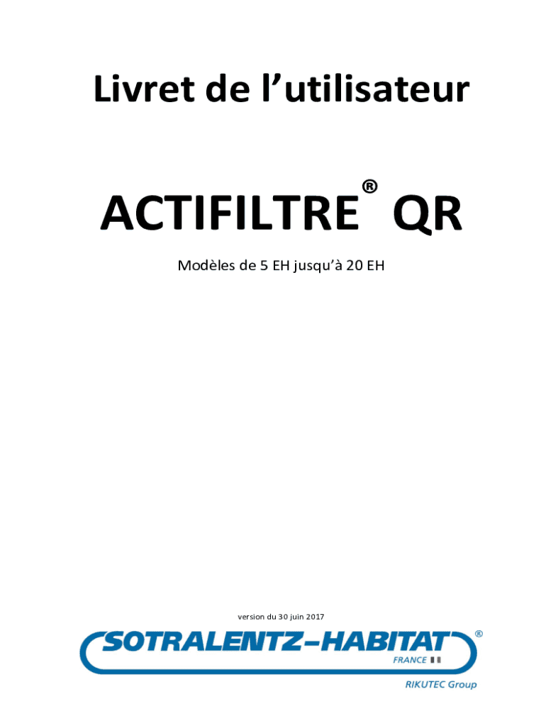 Live de lutilisateur ACTIFILTRE QR Models DE 5 EH just 20 EH versions Du 30 join 2017SOMMAIRE SAVANT PROPOSE ........................................................................................................................................
