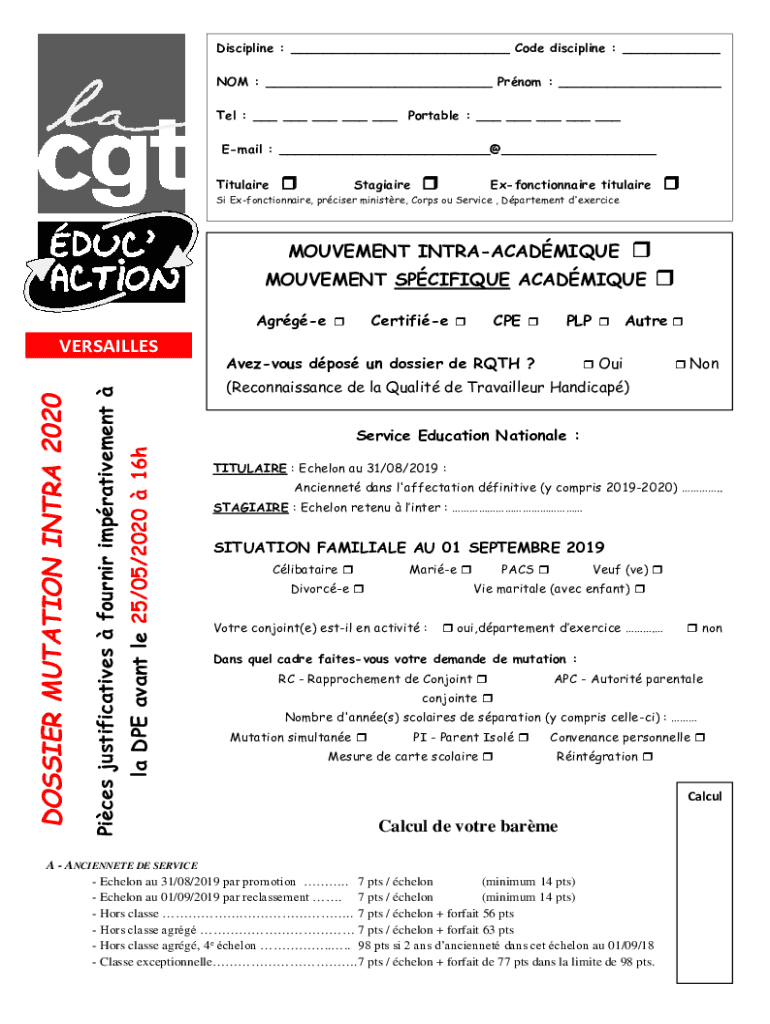 Discipline : ___ Code discipline : ___ NOT : ___ Prom : ___ Tel : ___ ___ ___ ___ ___ Portable : ___ ___ ___ ___ ___ Email : ___@___ TitulaireStagiaireExfonctionnaire titulaireSi Exfonctionnaire,