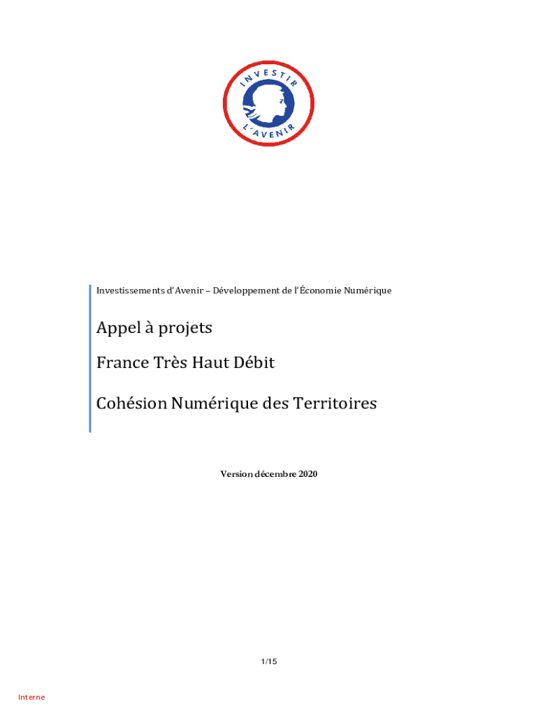 Investissements Davis Development DE economic NumriqueAppel projects France TRS Hat A bit of Cohesion Unique DES TerritoiresVersion December 20201/15InterneModalits pratiquesIMPORTANT DOSSIERS DE