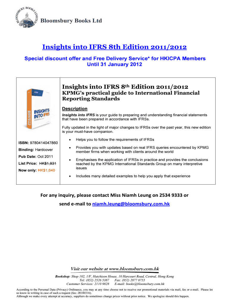 Insights into IFRS 8th Edition 2011/2012 Special discount offer and Free Delivery Service* for HKI CPA Members Until 31 January 2012 Insights into IFRS 8th Edition 2011/2012 KPMG practical guide to