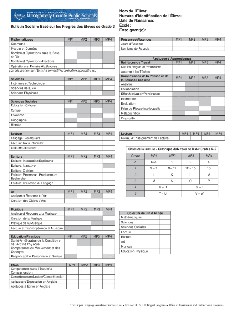 Bulletin Claire Ba's SUR LES Program DES lies DE Grade 3 Mathematizes GomtrieMP1MP2MP3MP4Prsences/Absences Hours d\'AbsenceMP1MP2MP3MP4Aptitudes d\'Apprentissage Habitués DE Travail MP1 MP2 Suit