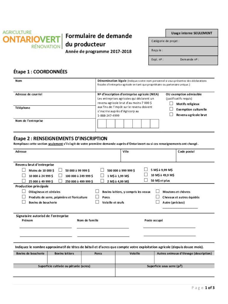 Usage Internet SEULEMENTFormulaire de demand Du producteurCatgorie de project :Anne de program 20172018Reu LE : Expel. N :Demand n :tape 1 : COORDINATES NomDnomination gale (Enriquez vote not personnel