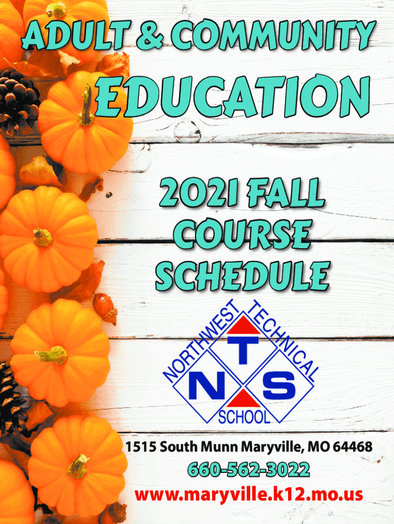 ADULT & COMMUNITYEDUCATION 2021 FALL COURSE SCHEDULE1515 South Mann Maryville, MO 644686605623022 www.maryville.k12.mo.usTable of Contents Important Information. . . . . . . . . . . . . . . . . .