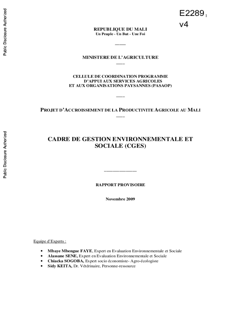 Public Disclosure AuthorizedREPUBLIQUE DU MALIE2289 1 v4Un People UN But One Foi___MINISTERE DE LAGRICULTURECELLULE DE COORDINATION Program DAPPER AUX SERVICES AGRICOLA ET AUX Organizations PASSAGES