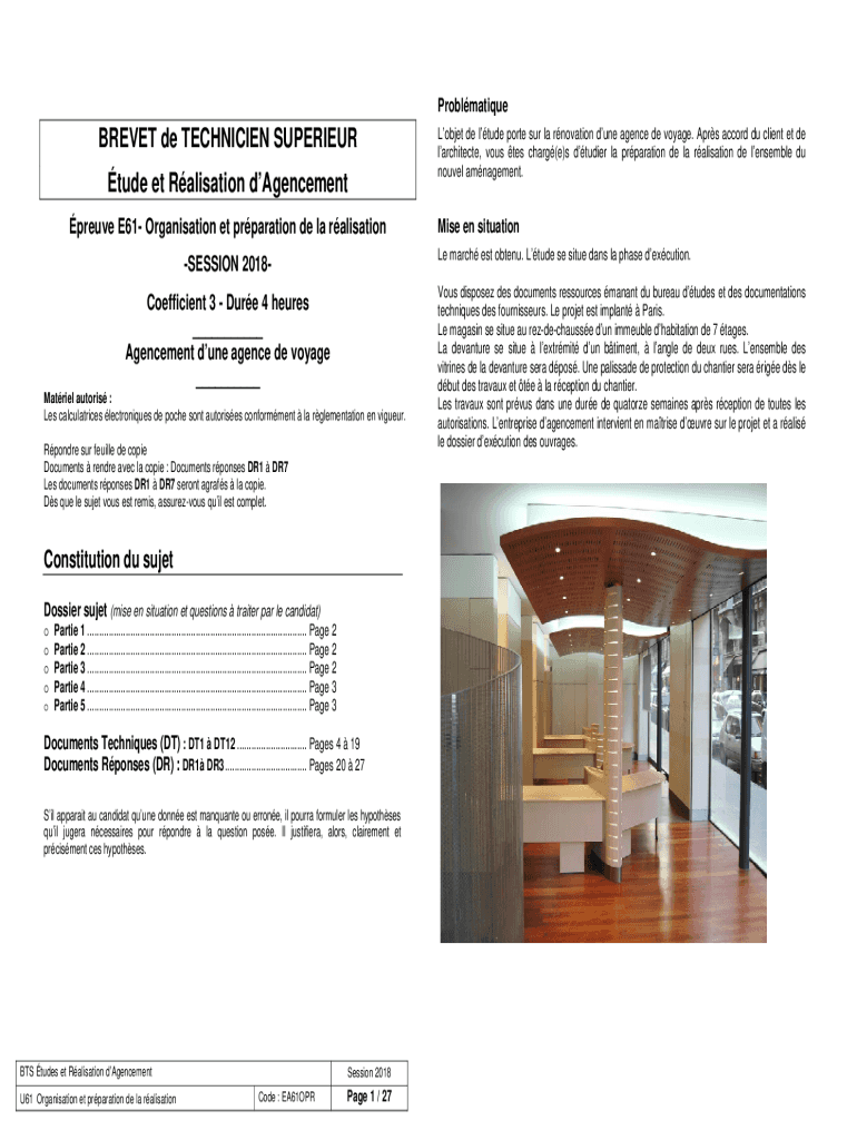 ProblmatiqueBREVET de TECHNICIEN SUPERIOR tube ET Radiation amercement prove E61 Organization ET preparation DE la ralisationCoefficient 3 Due 4 here ___ Amercement dune agency DE voyage ___ Material
