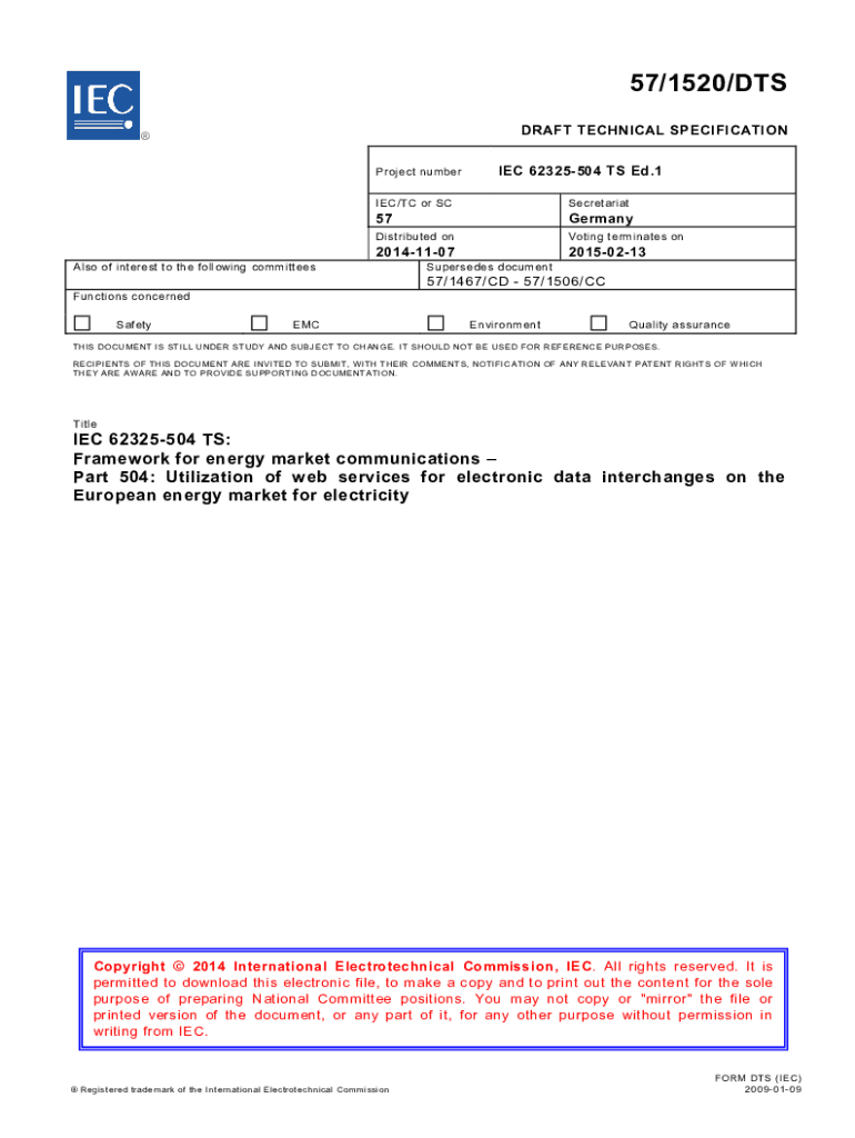 57/1520/DTS DRAFT TECHNICAL SPECIFICATION Project number IEC 62325504 TS Ed.1IEC/TC or SCSecretariatDistributed nonvoting terminates on57 Also of interest to the following committees20141107Functions