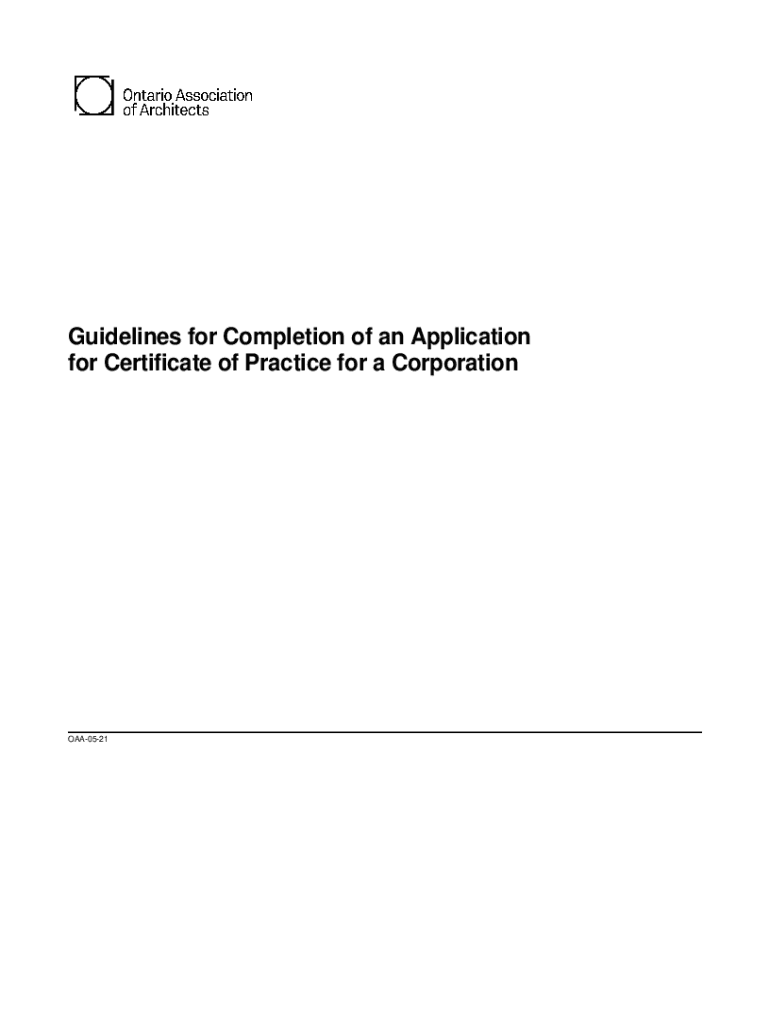 Guidelines for Completion of an Application for Certificate of Practice for a CorporationOAA0521INDEX Page Number General .............................................................................................................................................................................................