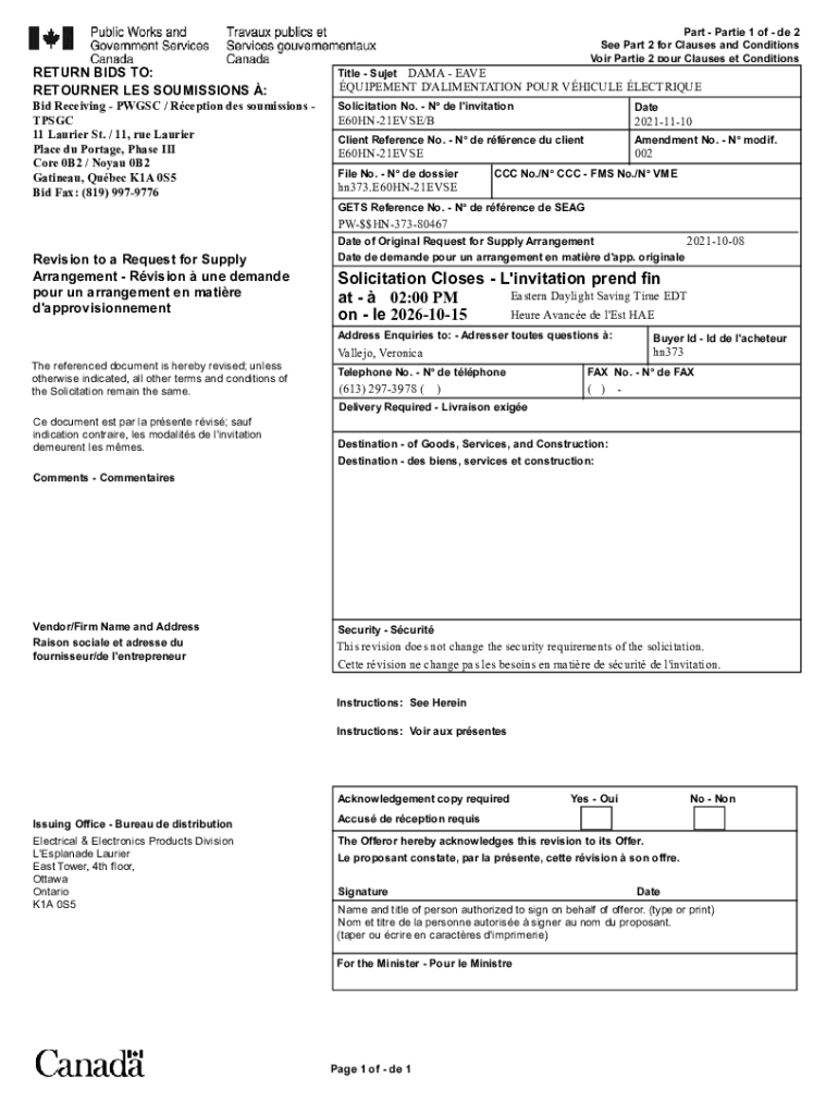 Part Parties 1 of DE 2 See Part 2 for Clauses and Conditions Void Parties 2 pour Clauses et Conditions1 1RETURN BIDS TO: RETURNER LES COMMISSIONS :Title Suet DATA Avoid Receiving PW GSC / Reception