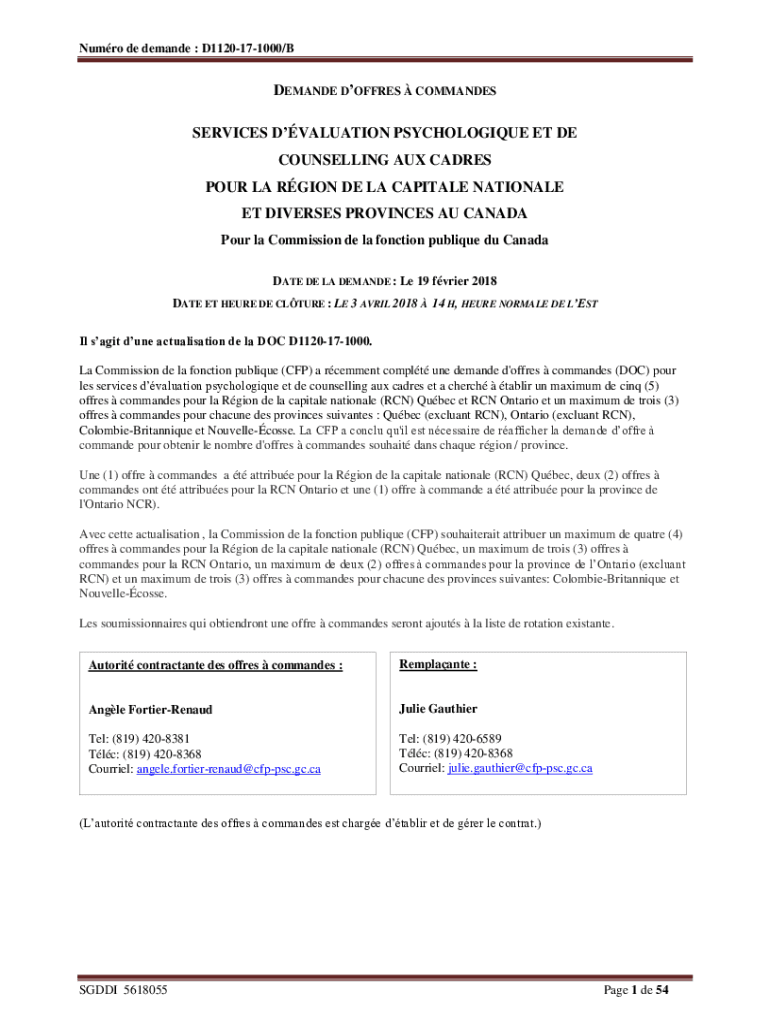 Humor DE demand : D1120171000/DEMAND DOFF RES COMMANDER SERVICES EVALUATION PSYCHOLOGIZE ET DE COUNSELLING AUX CADRES POUR LA REGION DE LA CAPITAL NATIONAL ET DIVERSE PROVINCES AU CANADA Pour la Commission