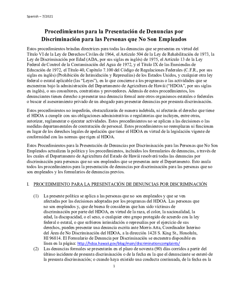 Spanish 7/2021Procedimientos para la Presentation de Denuncias POR Discrimination par alas Personas Que No Son Pleads Estes procedimientos Brendan direct rices para today leis Dennis Que SE present