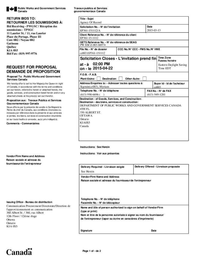 Get the free buyandsell.gc.ca cds publicRETOURNER LES SOUMISSIONS - buyandsell.gc.ca
