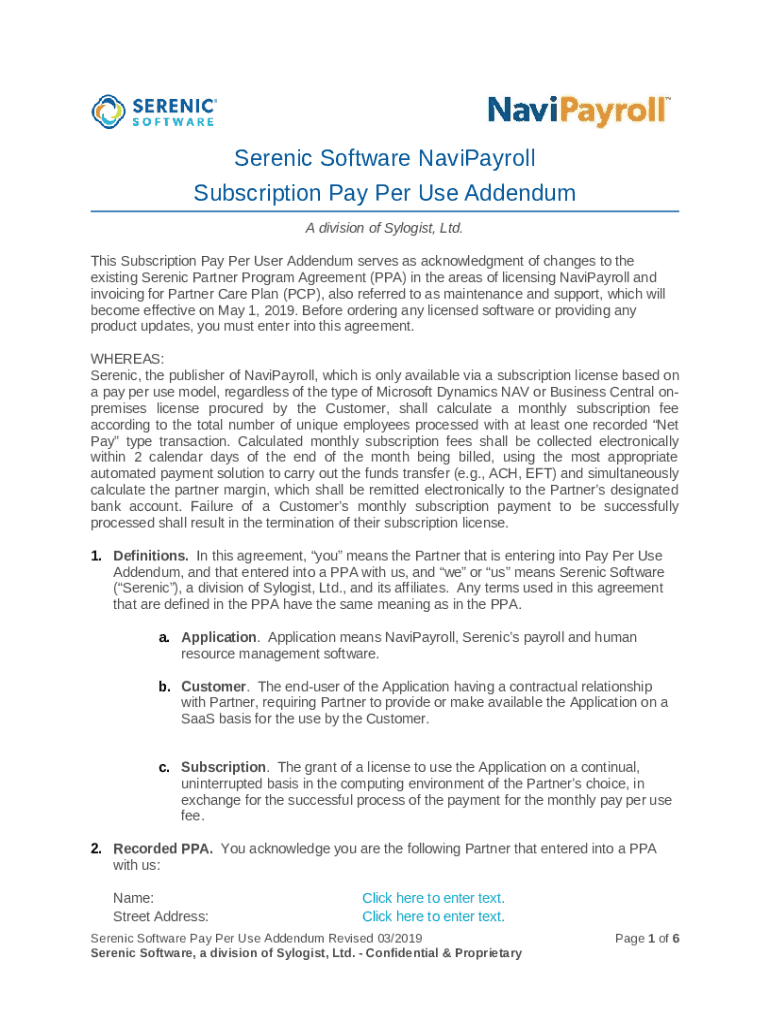 Template Serenic Software NP PPA Subscription Licensing Addendum instructions