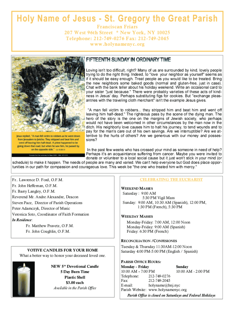 Get the free New York, NY 10025 - container.parishesonline.com
