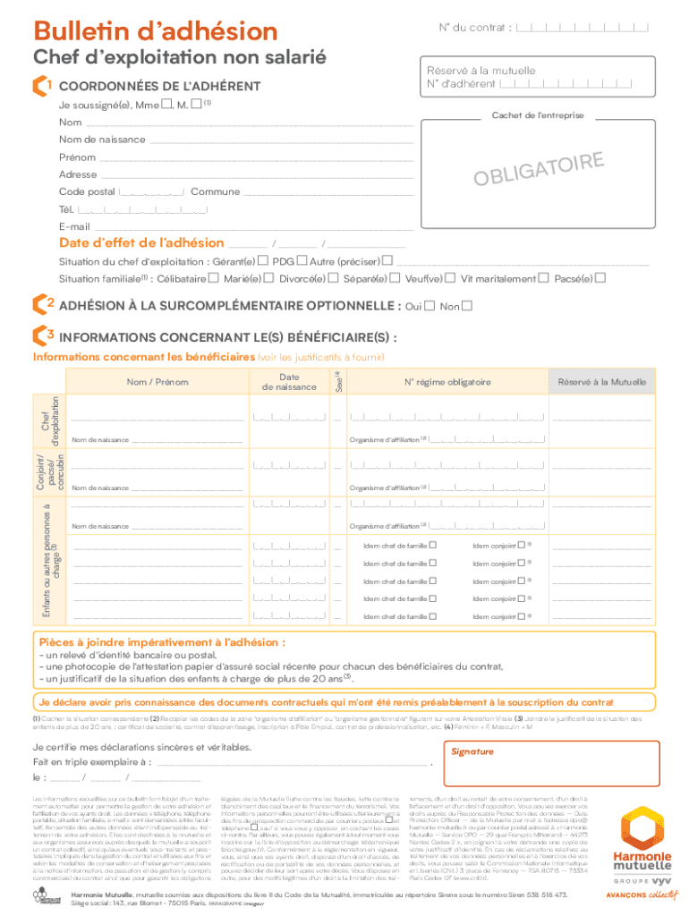 Get the free Bulletin d'adhsion - Harmonie Mutuelle