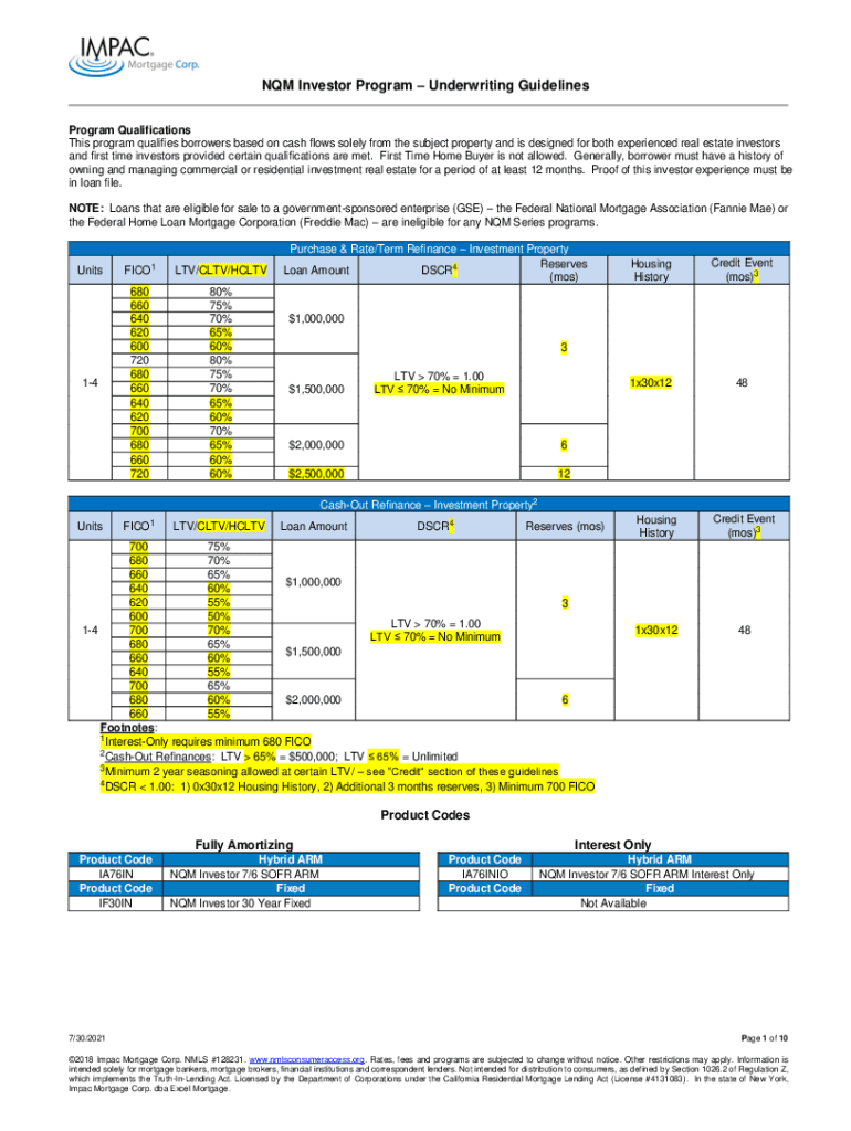 Get the free NQM Investor Program Underwriting Guidelines - Impac ...