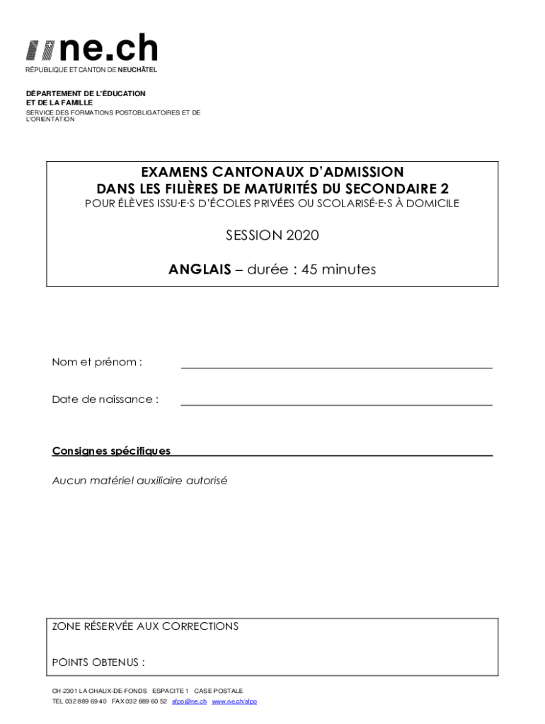 DEPARTMENT DE L\'EDUCATION ET DE LA CAMILLE SERVICE DES FORMATIONS POSTOBLIGATOIRES ET DE L\'ORIENTATIONEXAMENS CANTON AUX ADMISSION DAYS LES FIGURES DE MATURITY DU SECONDARY 2 POUR LIES ISSUES DOLES