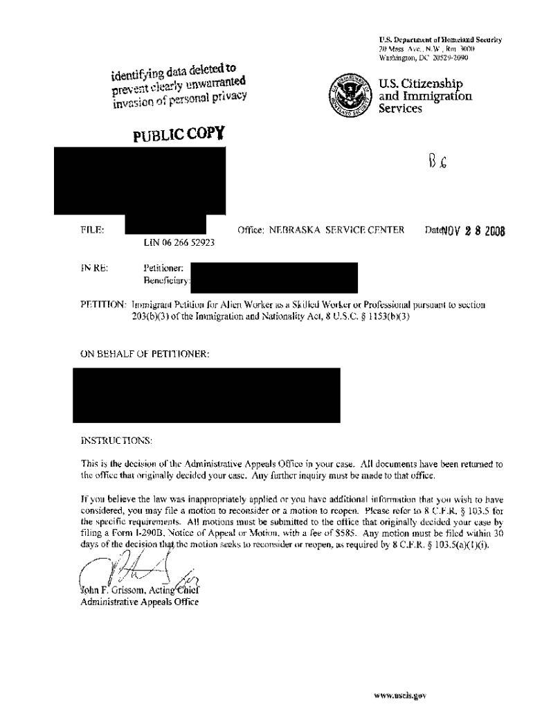 U.S. Department of Homeland Security 20 Mass. Ave., N.W., Rm. 3000 Washington, DC 205292090U. S. Citizenship and ImmigrationPUBLIC COLIN 06 266 52923IN RE: PETITION: Immigrant Petition for Alien Worker