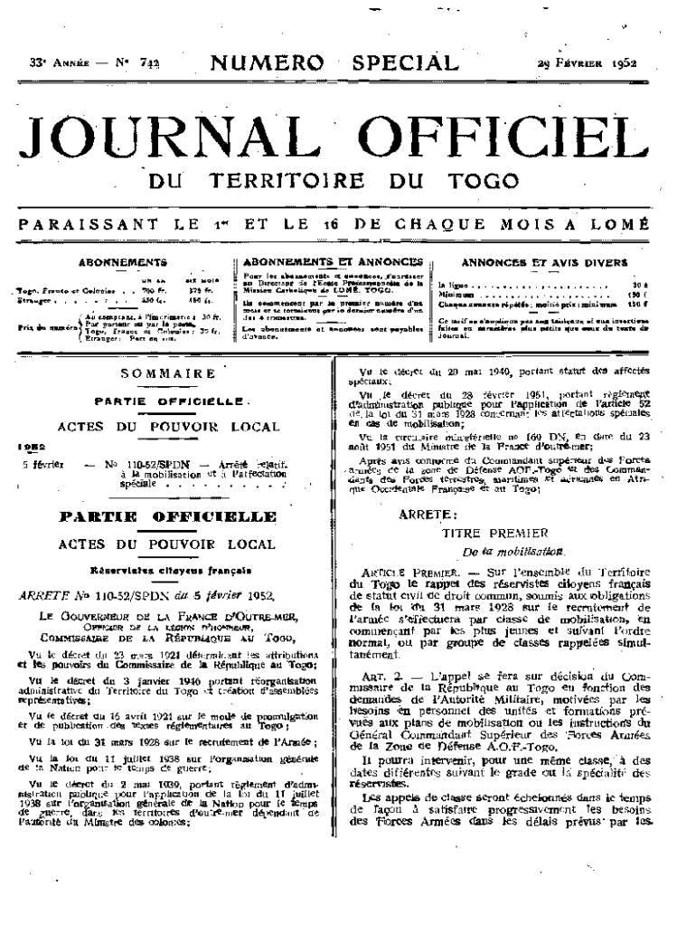 Get the free NUM'ERO SPECIAL JOURNAL . OFFICIEL - jo.gouv.tg