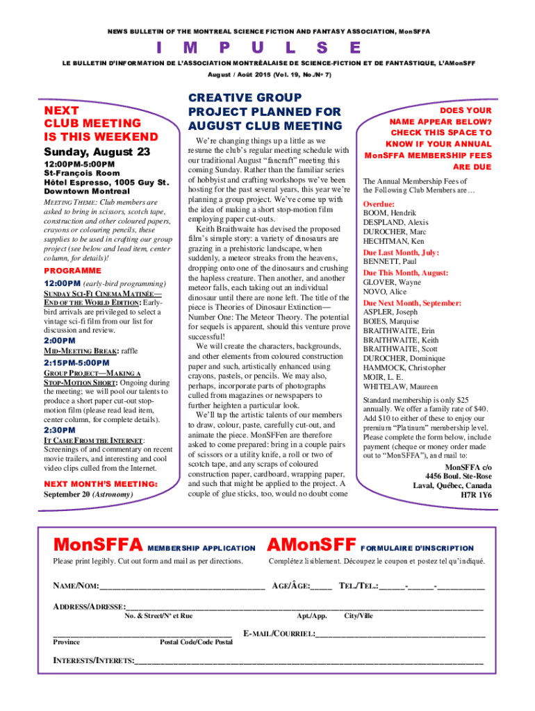 Get the free NEWS BULLETIN OF THE MONTREAL SCIENCE FICTION AND FANTASY ...