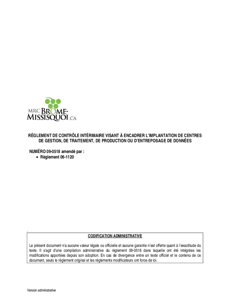ELEMENT DE CONT RLE INTIMATE VISA NT ENCODER IMPLANTATION DE Centers DE SECTION, DE TREATMENT, DE PRODUCTION OF DENTREPOSAGE DE DONNÉS NU MRO 090518 amend par : Element 061120. CODIFICATION ADMINISTRATIVE