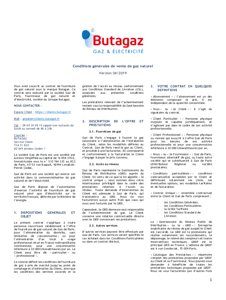 Condition grades DE venue DE gas natural Version 04/2019Vous ave Sanskrit UN contract DE furniture DE gas natural sous' la marque Cutaway. Ce contract era ex cut par la so cit Gas de Paris, Fournier