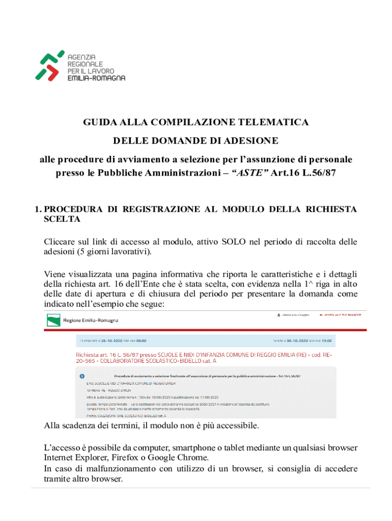 GUIDE ALL COMPILATION TELEMATICS DELL DEMAND DI ADHESION all procedure DI Papiamento a selection per lassunzione DI personal press ole Public Administration TASTE Art.16 L.56/871. PROCEDURE DI REGISTRATION