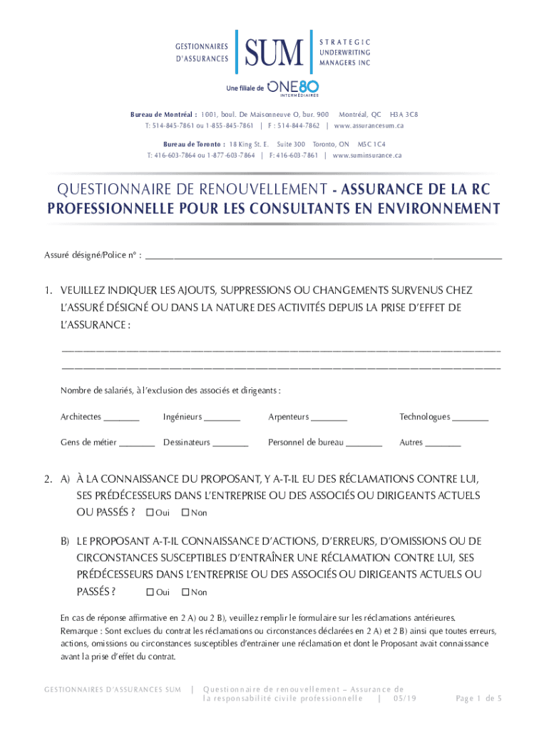 Bureau de Montral : 1001, soul. De Maisonette O, bur. 900 Montreal, QC H3A 3C8 T: 5148457861 of 18558457861 | F : 5148447862 | www.assurancesum.ca Bureau de Toronto : 18 King St. E. Suite 300 Toronto,