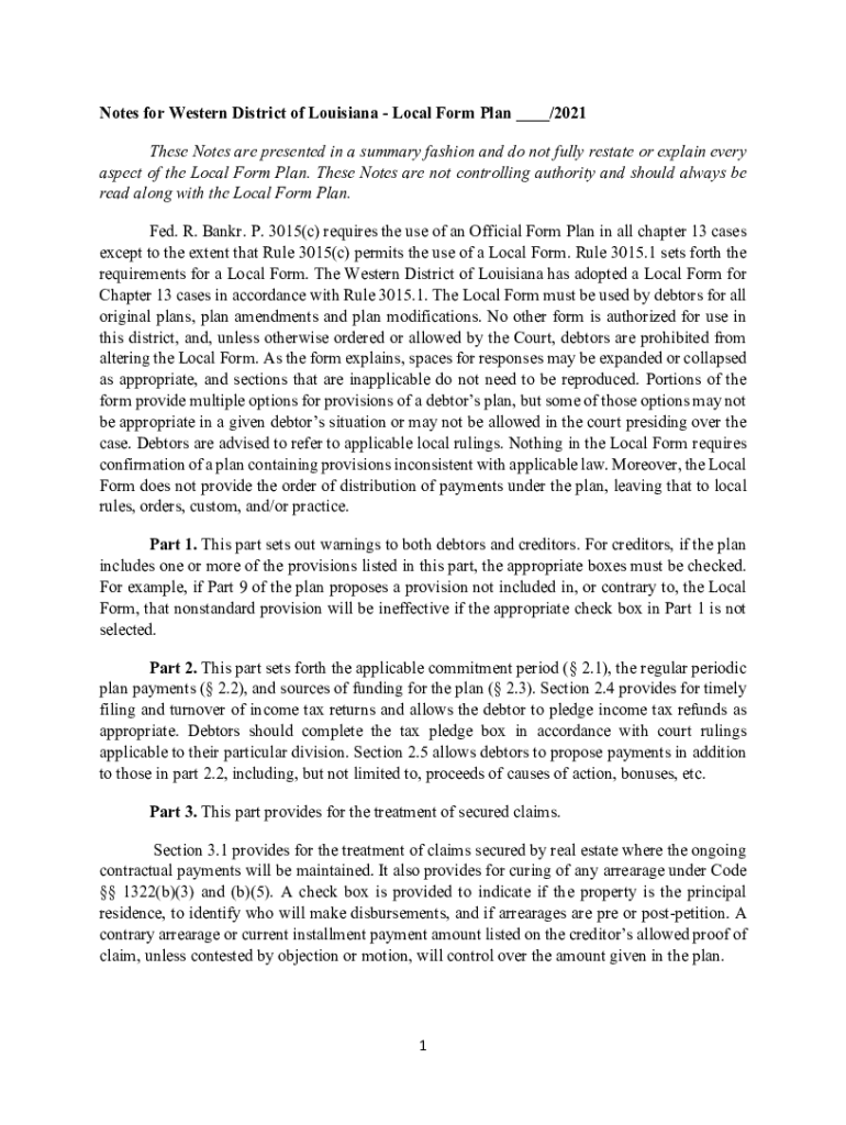 Get the free Notes for Western District of Louisiana - Local Form Plan ...