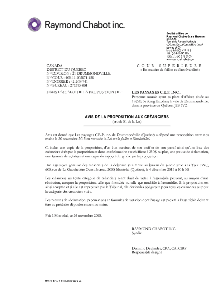 Get the free Avis de la proposition aux creanciers - Raymond Chabot inc.
