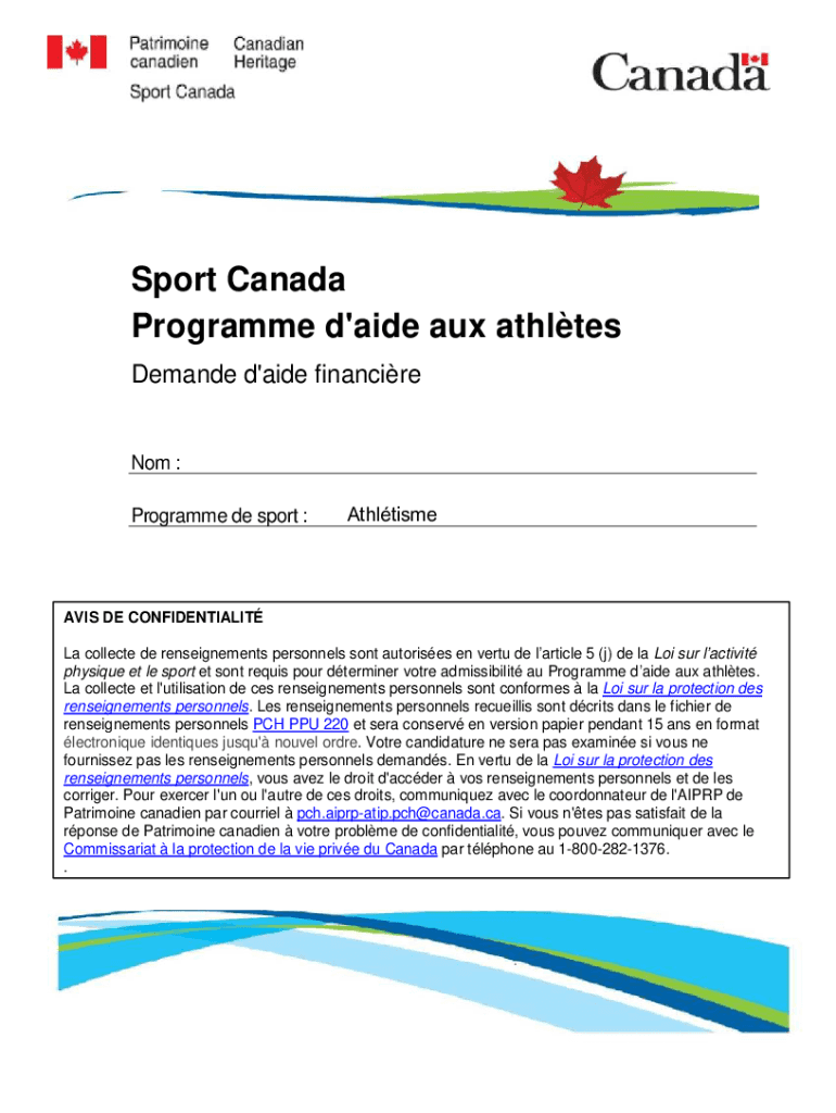 Sport Canada Program\'aide aux athletes Demanded\'aide financier Not : Program DE sport :AthltismeAVIS DE CONFIDENTIALITY La collected DE restatements personnel sent autorises en vert DE article 5