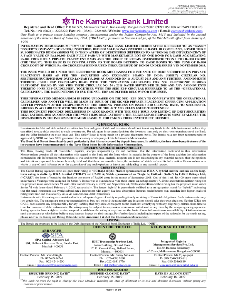 PRIVATE & CONFIDENTIAL [FOR PRIVATE CIRCULATION ONLY] (This information Memorandum is neither a Prospectus nor a Statement in Lieu of Prospectus)Registered and Head Office: P B No 599, Mahavira Circle,