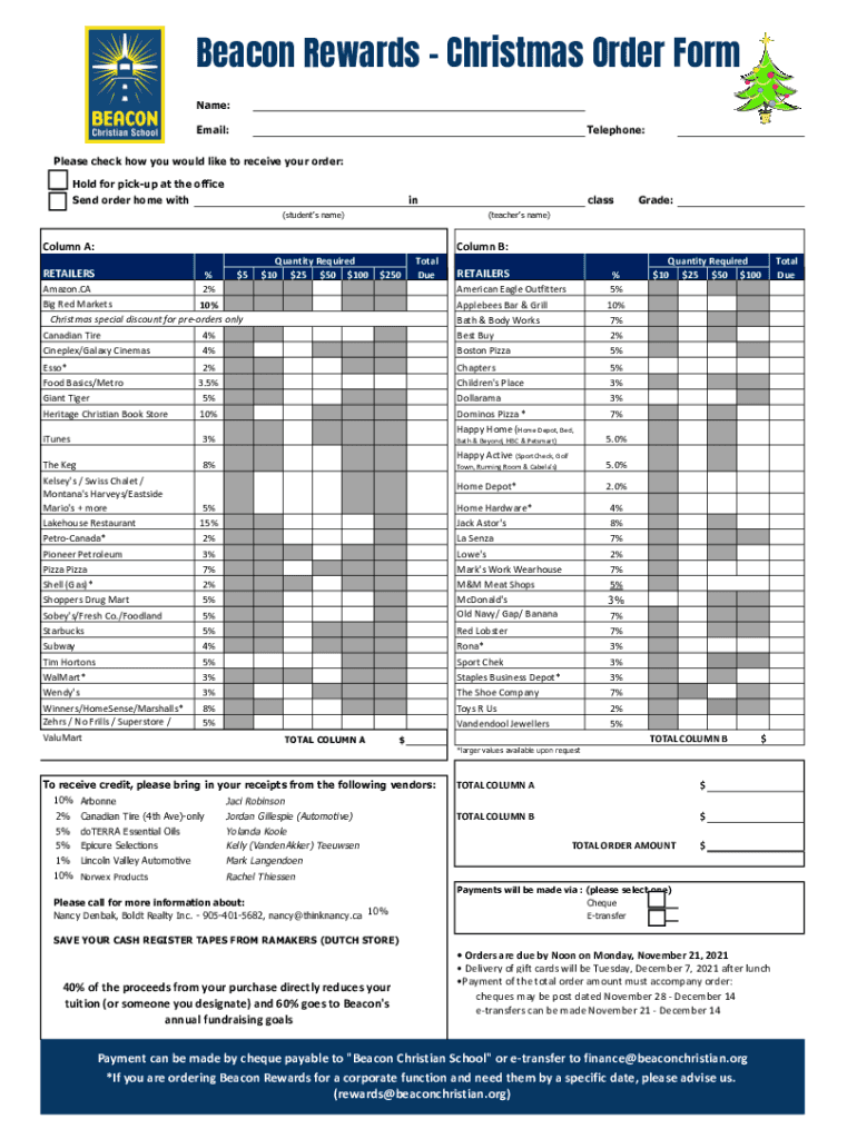 Anyone who wants to purchase Christmas items with Beacon Rewards can fill out the Beacon Rewards Christmas order.