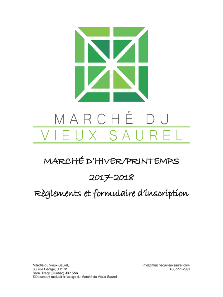 MARCH DRIVER/PRINTERS 20172018 Element set formula ire dinscriptionMarch Du VieuxSaurel, 80, rue George, C.P. 91 SorelTracy (Quebec) J3P 5N6 Document exclusive usage Du March du VieuxSaurel.info@marcheduvieuxsaurel.com