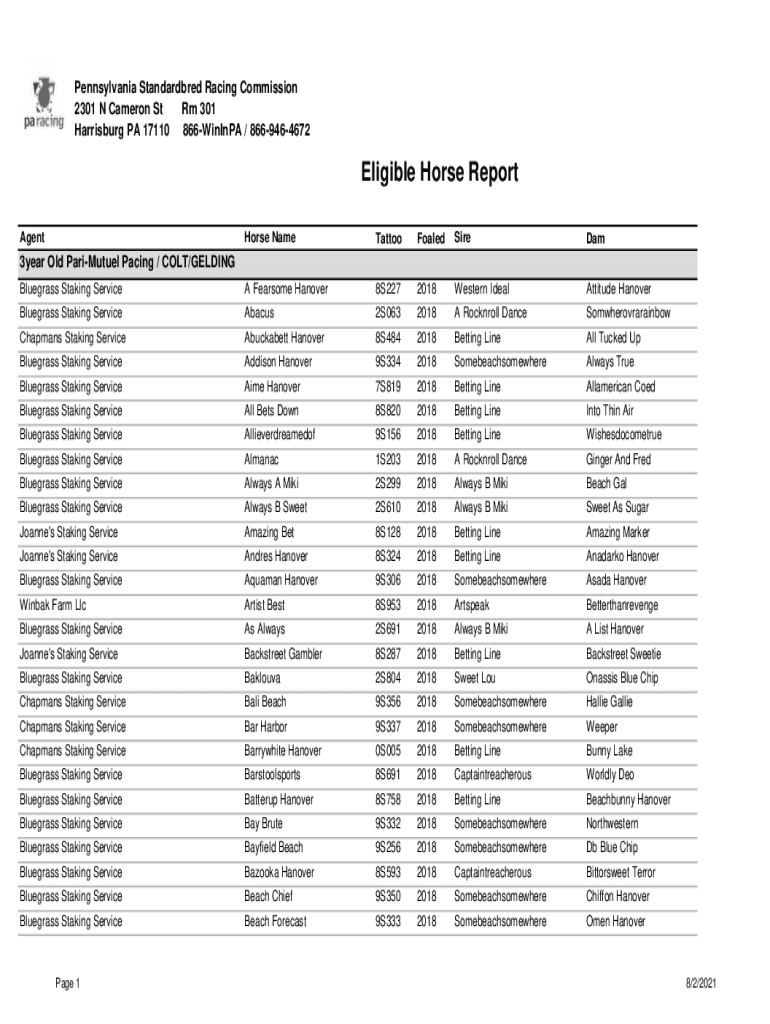Get the free Pennsylvania Harness 2301 N Cameron St Eligible Horse ...