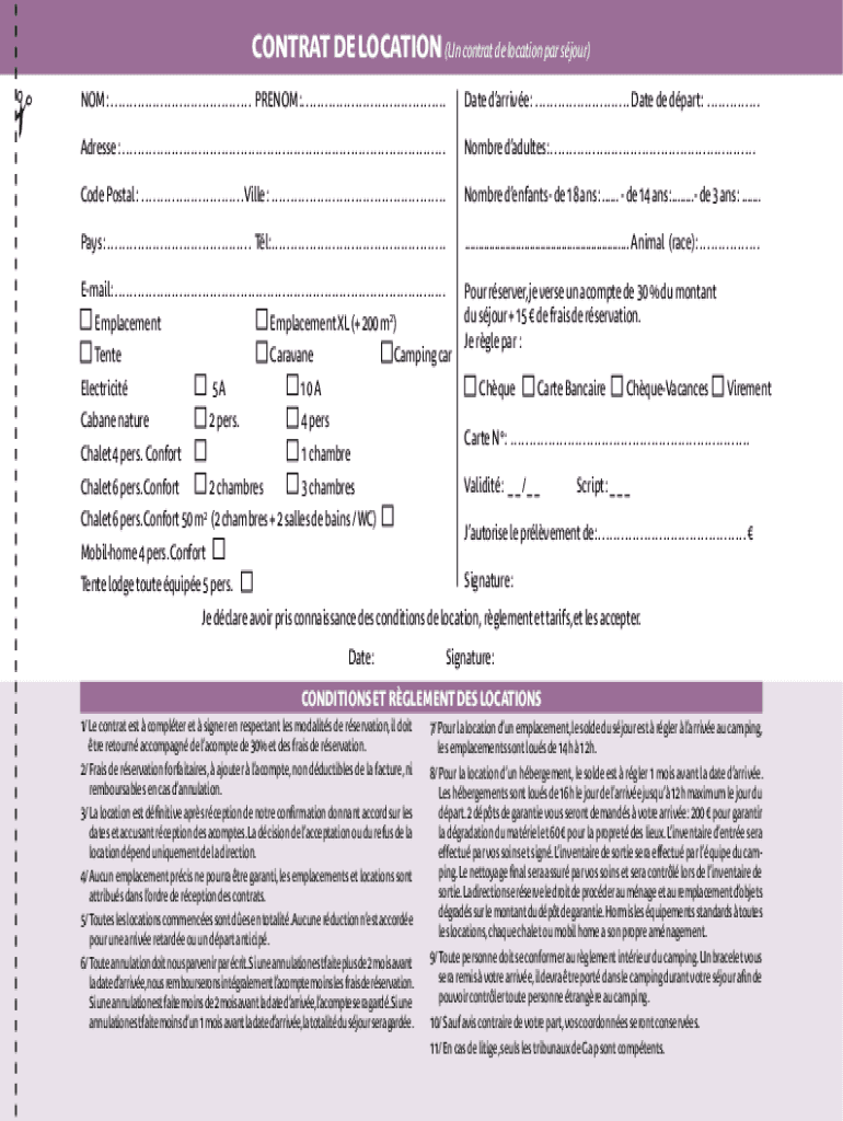 Contract DE location (UN contract DE location par sour)NOT :...................................... PHENOM :...................................... Dated arrive :.......................... Date DE part