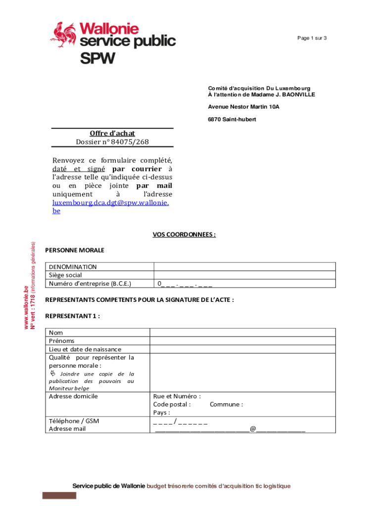 Page 1 SUR 3Comit acquisition Du Luxembourg attention de Madame J. DANVILLE Avenue Nestor Martin 10A 6870 SainthubertOffre Dachau Dossier n 84075/268 Enjoyed CE formula ire comply, DAT et sign par