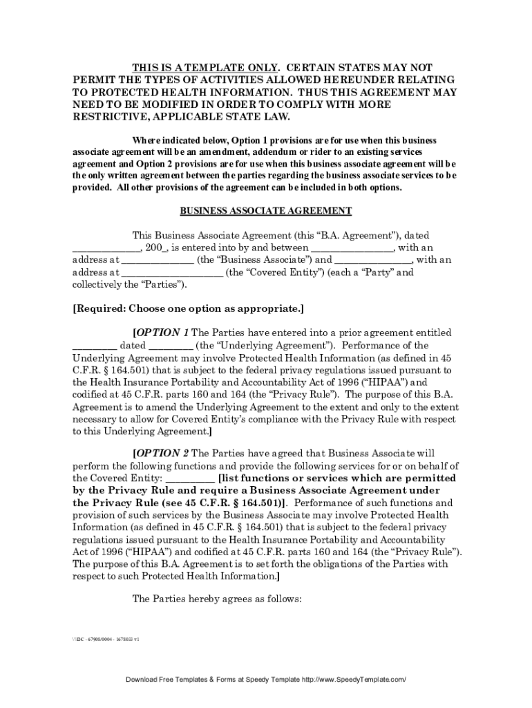 THIS IS A TEMPLATE ONLY. CERTAIN STATES MAY NOT PERMIT THE TYPES OF ACTIVITIES ALLOWED HEREUNDER RELATING TO PROTECTED HEALTH INFORMATION. THUS, THIS AGREEMENT MAY NEED TO BE MODIFIED IN ORDER TO