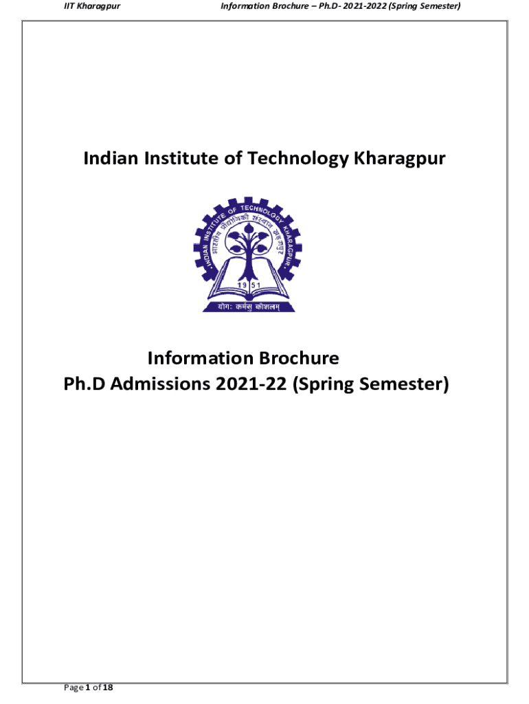 IIT KharagpurInformation Brochure Ph.D. 20212022 (Spring Semester)Indian Institute of Technology KharagpurInformation Brochure Ph.D. Admissions 202122 (Spring Semester)Page 1 of 18IIT KharagpurInformation