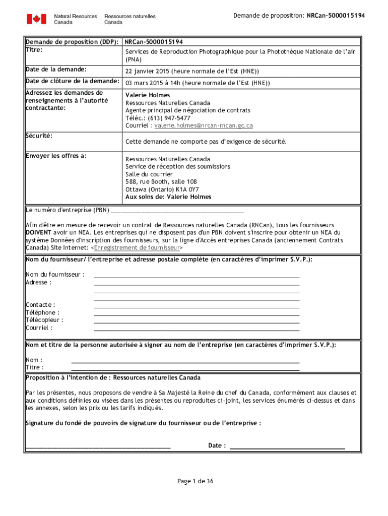 Get the free Numro de la demande de proposition NRCan-5000014985 (DDP ...